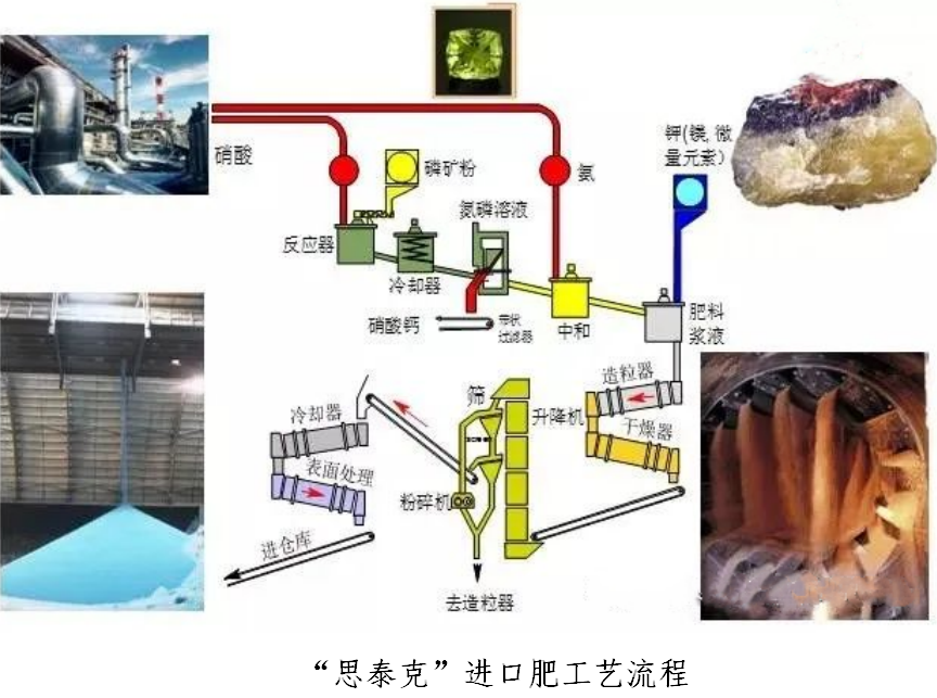 “思泰克”复合肥,原产地是希腊,作为一款进口肥料,生产工艺与国内的有所不同,在国外该产品是以磷酸、氨为原料,利用中和器、管式反应器将中和料浆在氨化粒化器中进行涂布造粒,在生产过程中添加部分氮素和钾素以及其他物质,再经干燥、筛分、冷却而得到复合肥产品,这是国外各大化肥公司和工厂大规模生产常采用的生产方法。该生产工艺的优点是:既可生产磷酸铵也可生产NPK肥料,同时也充分利用了酸、氨的中和热蒸发物料水份,降低造粒水含量和干燥负荷,减少能耗,此法的优点是:生产规模大,产品质量好,产品强度较高,富含中微量元素。作为营销人员在销售过程中一定要学会辨识市场中的进口肥料的真伪。