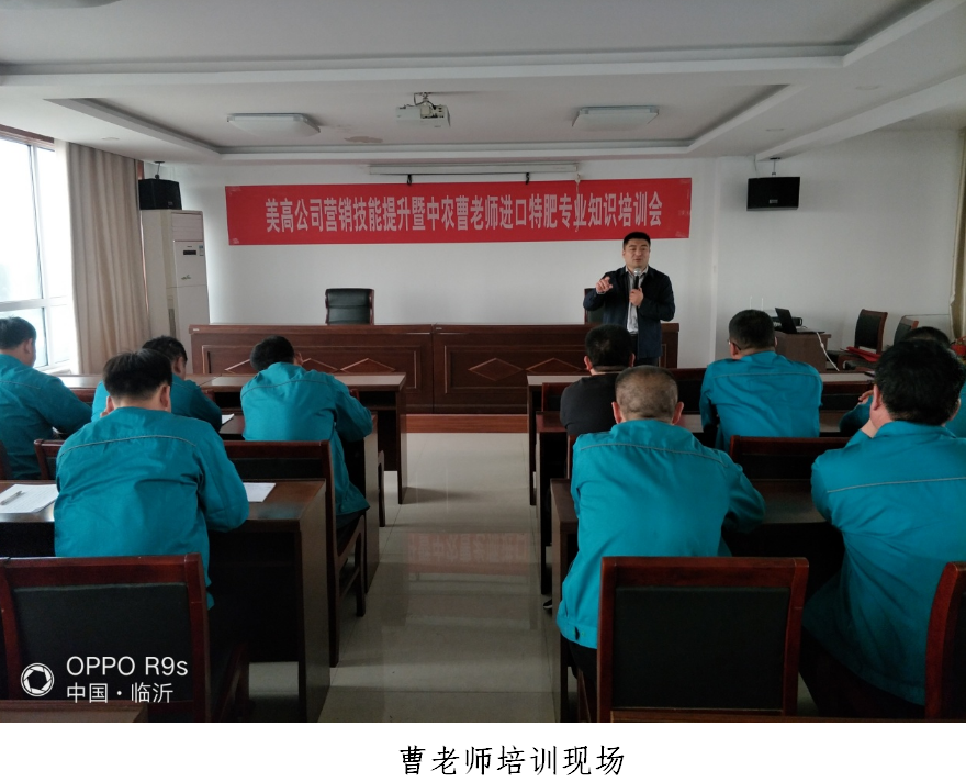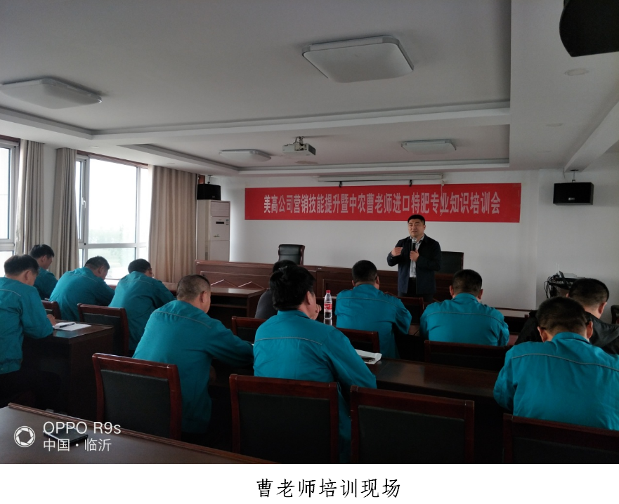 曹老师还向广大营销人员传授了多年在特肥推广方面的的营销实战经验,他指出进口肥料不同与普通复合肥,它所针对的用户群体与普通肥有着本质的不同,要想推广进口肥,必须先从客户群体定位上下功夫。他全面细致的讲述了进口肥料整个的推广过程。从市场走访、客户群体选择、营销方案制定、目标人群锁定、产品会议的推广、实验田的建设、农技知识分享、田间管理的经验推广、后续跟踪服务等各个方 面进行了讲述,尤其是技术指导、经验推广、跟踪服务等方面进行了深入细致的分析,让广大营销人员耳目一新,受益匪浅。